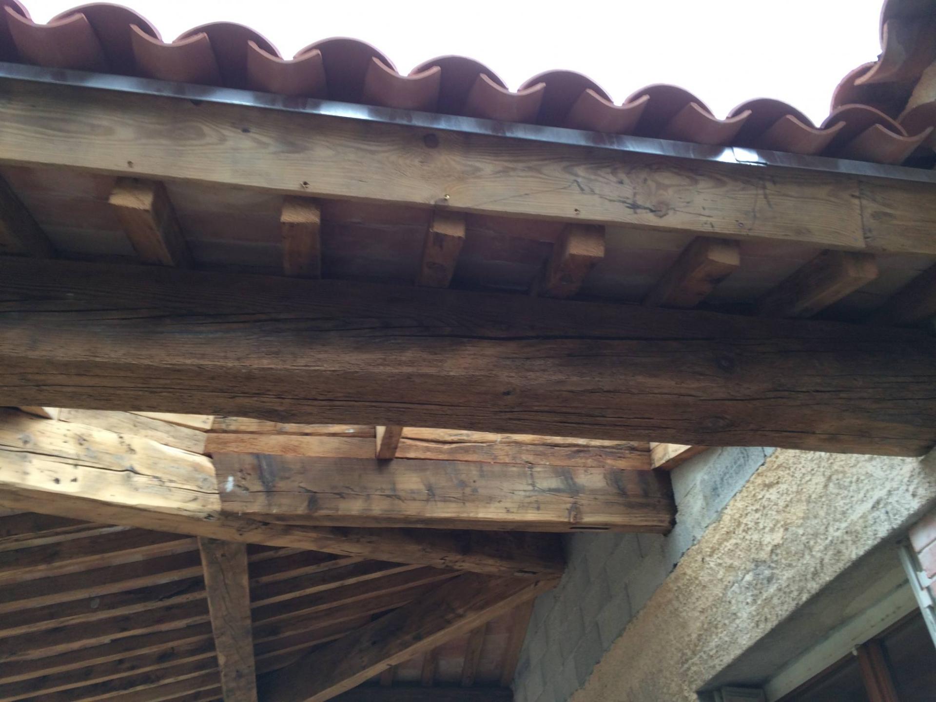 abris terrasse attenant à la maison, en vieux bois,